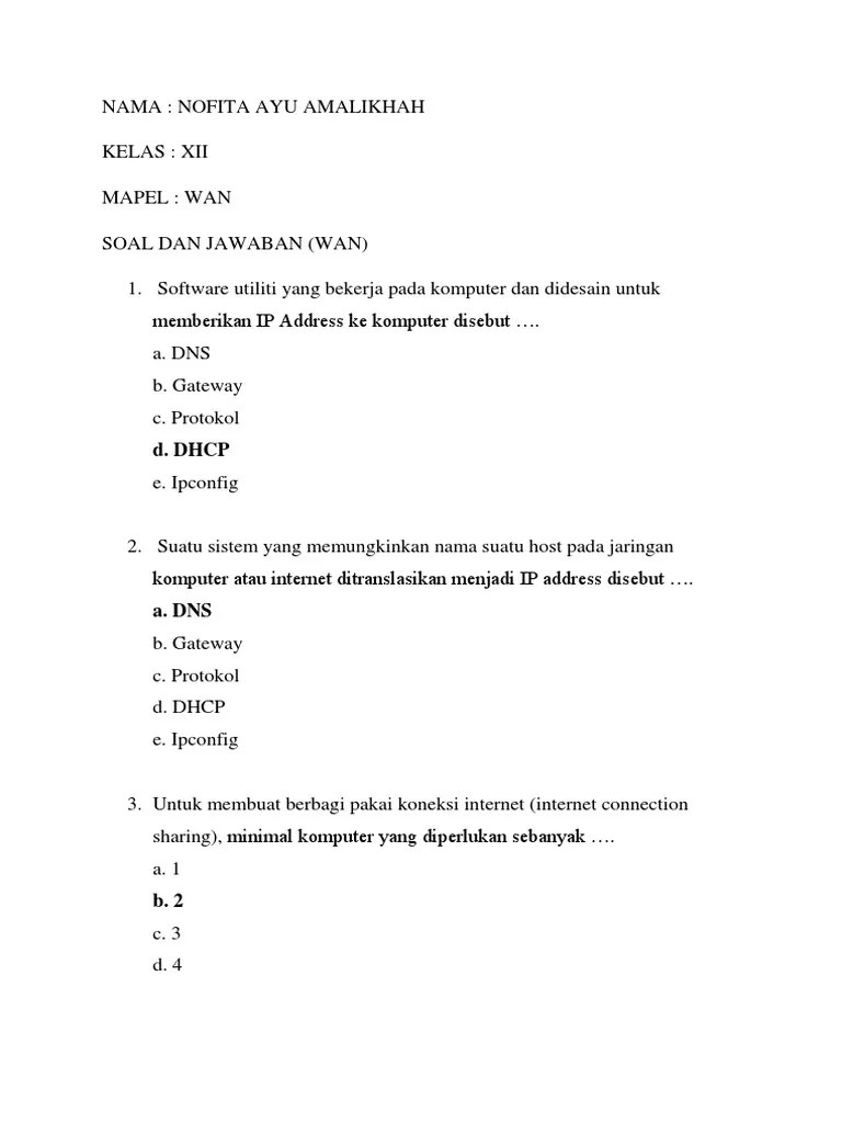 Contoh soal dan jawaban tkj. Ini adalah cara share koneksi internet kabel dengan 2 lan card pada windows xp. dalam konfigurasi berbagi pakai koneksi internet (internet connection sharing), komputer yang tersambung dengan internet akan berfungsi sebagai … a. Soal dan jawaban tkj atau jaringan komputer dan komunikasi data. dalam konfigurasi berbagi pakai koneksi internet (internet connection sharing), komputer yang tersambung dengan internet akan berfungsi sebagai. Istilah ttl dalam perintah ping dimaksudkan … Selain itu fungsi sharing jaringan bisa juga seperti ; berbagi pakai perangkat keras (hardware) b. Latihan soal un smk tkj. Untuk membuat berbagi pakai koneksi internet (internet connection sharing), minimal komputer yang diperlukan sebanyak? Setiap komputer yang terhubung ke jaringan dapat bertindak baik. dalam konfigurasi berbagi pakai koneksi internet (internet connection sharing), komputer yang tersambung dengan internet akan berfungsi sebagai … a. dalam konfigurasi berbagi pakai koneksi internet (internet connection sharing), komputer yang tersambung dengan internet akan berfungsi sebagai … a.