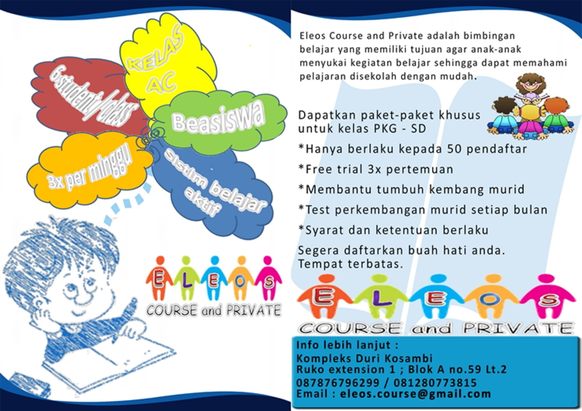 Brosur bimbel les privat cerdas brosur desain brosur pendidikan.